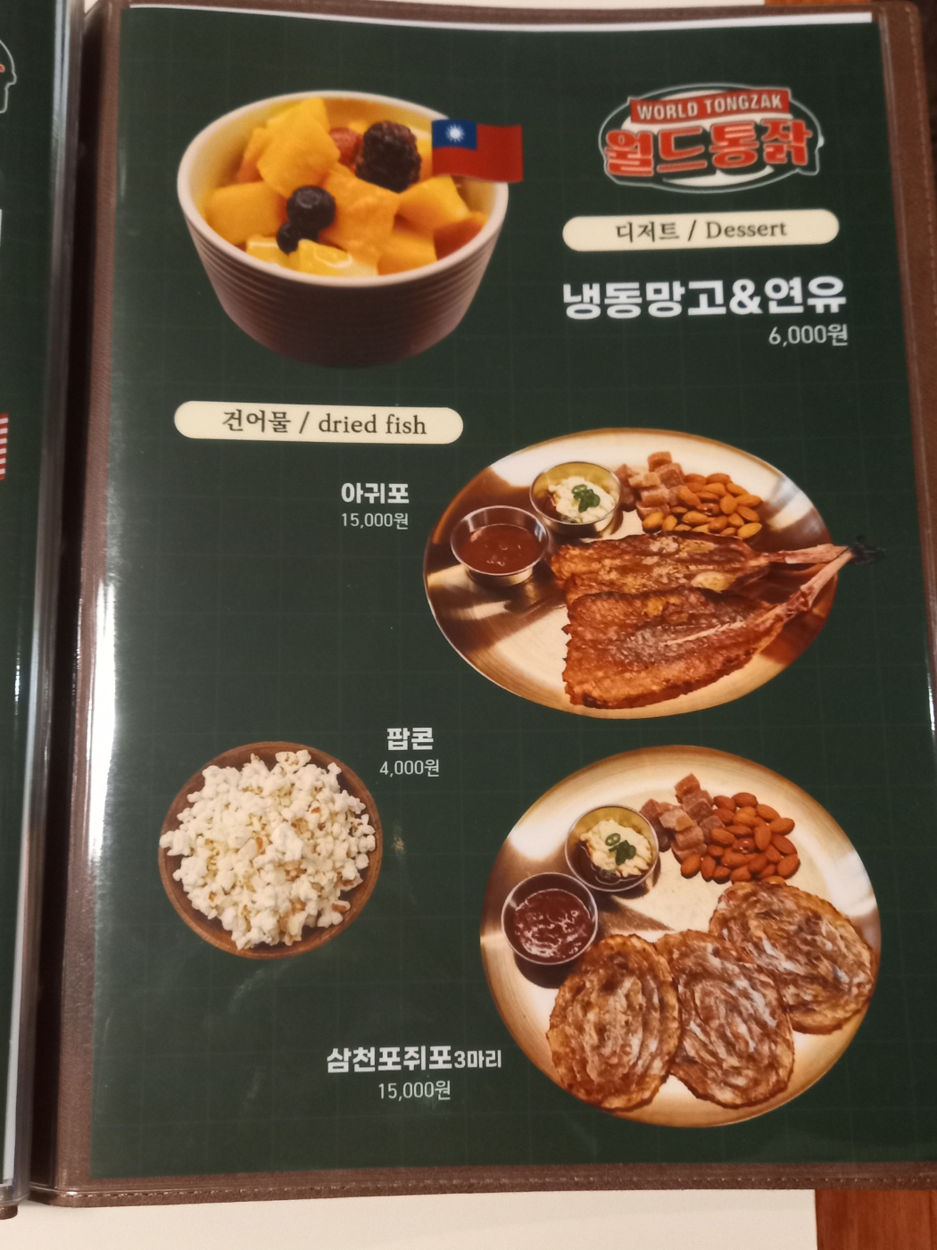 남포동 월드통잙 메뉴판입니다.