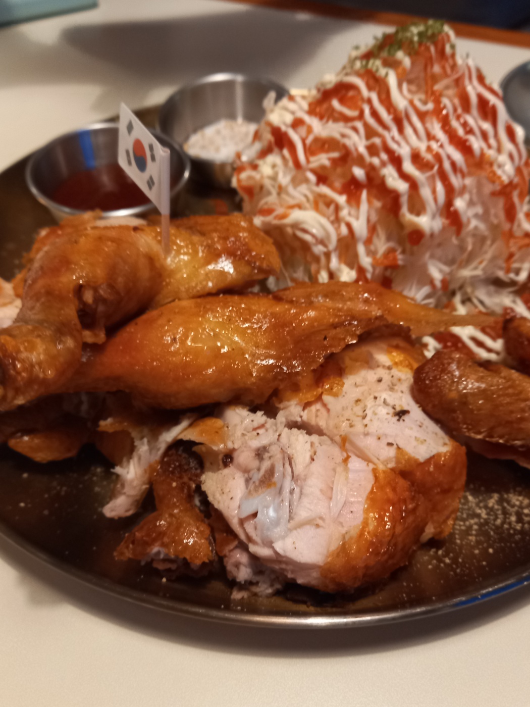 일반 치킨과 다른 통닭구이와 생소한 사퀴테리를 먹을 수 있는 월드통잙.