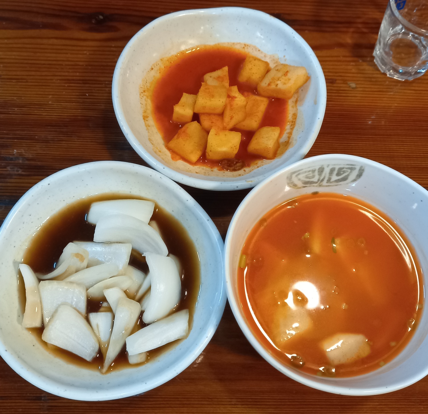 밑반찬으로 깍두기 양파절임이 나옵니다.