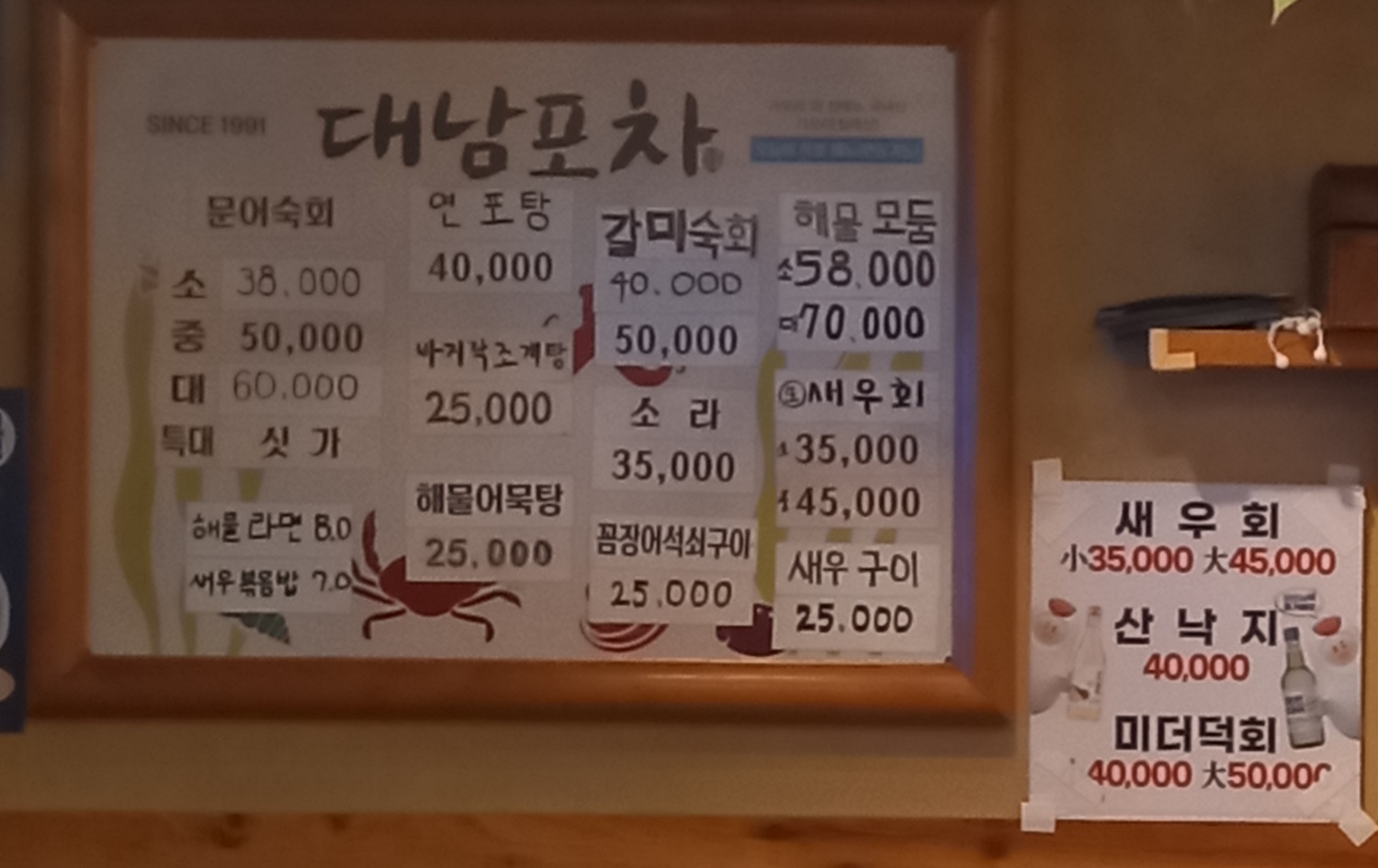 가볍게 먹을 수 있는 해산물이 좋겠다싶어 대남포차에 방문하였습니다.