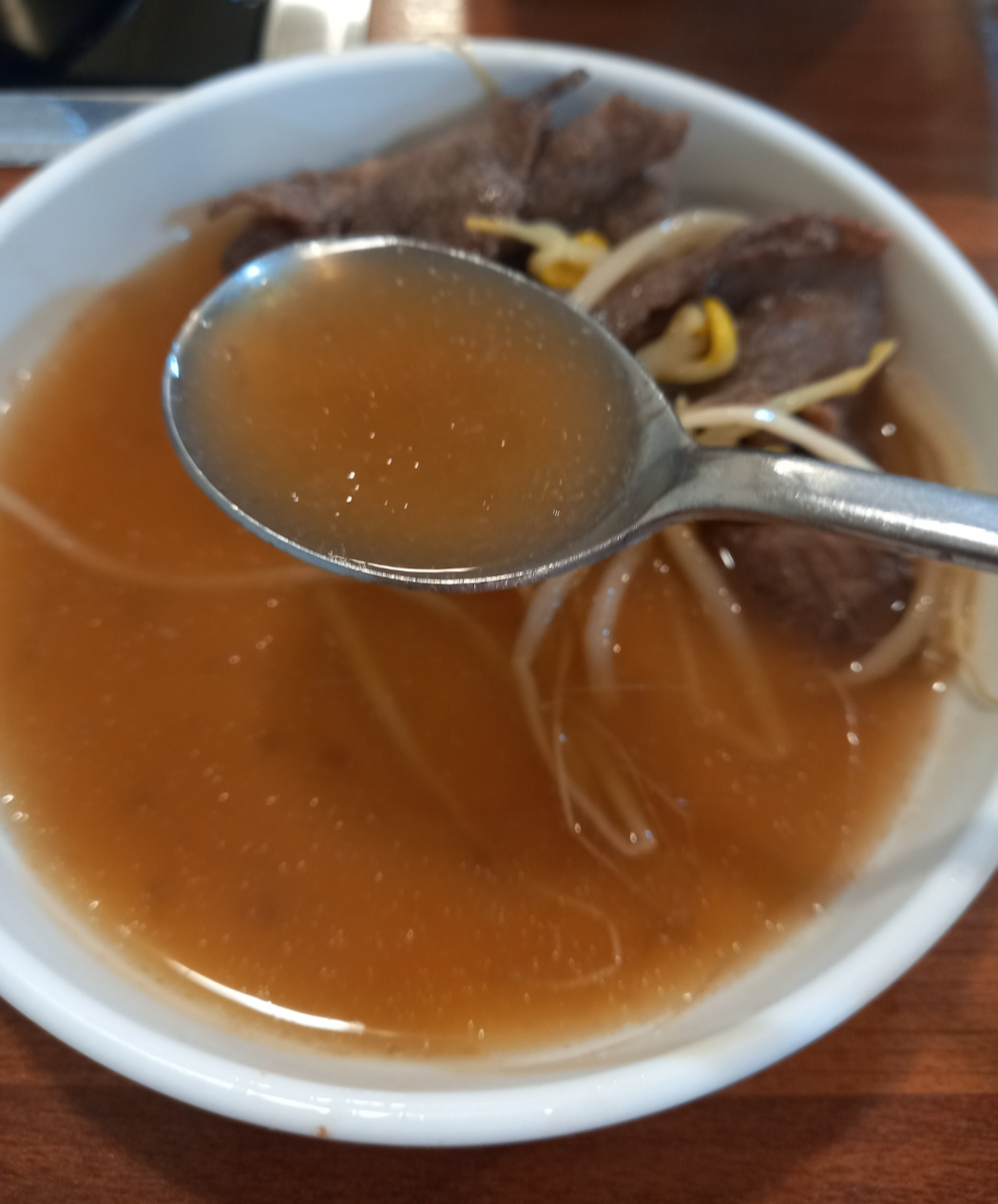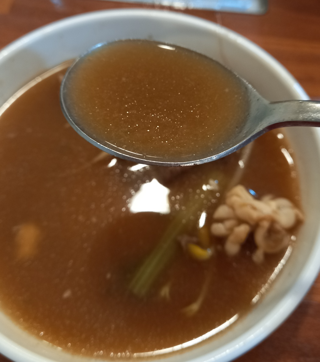 고기가 들어간 해물탕 국물을 먹어봅니다.