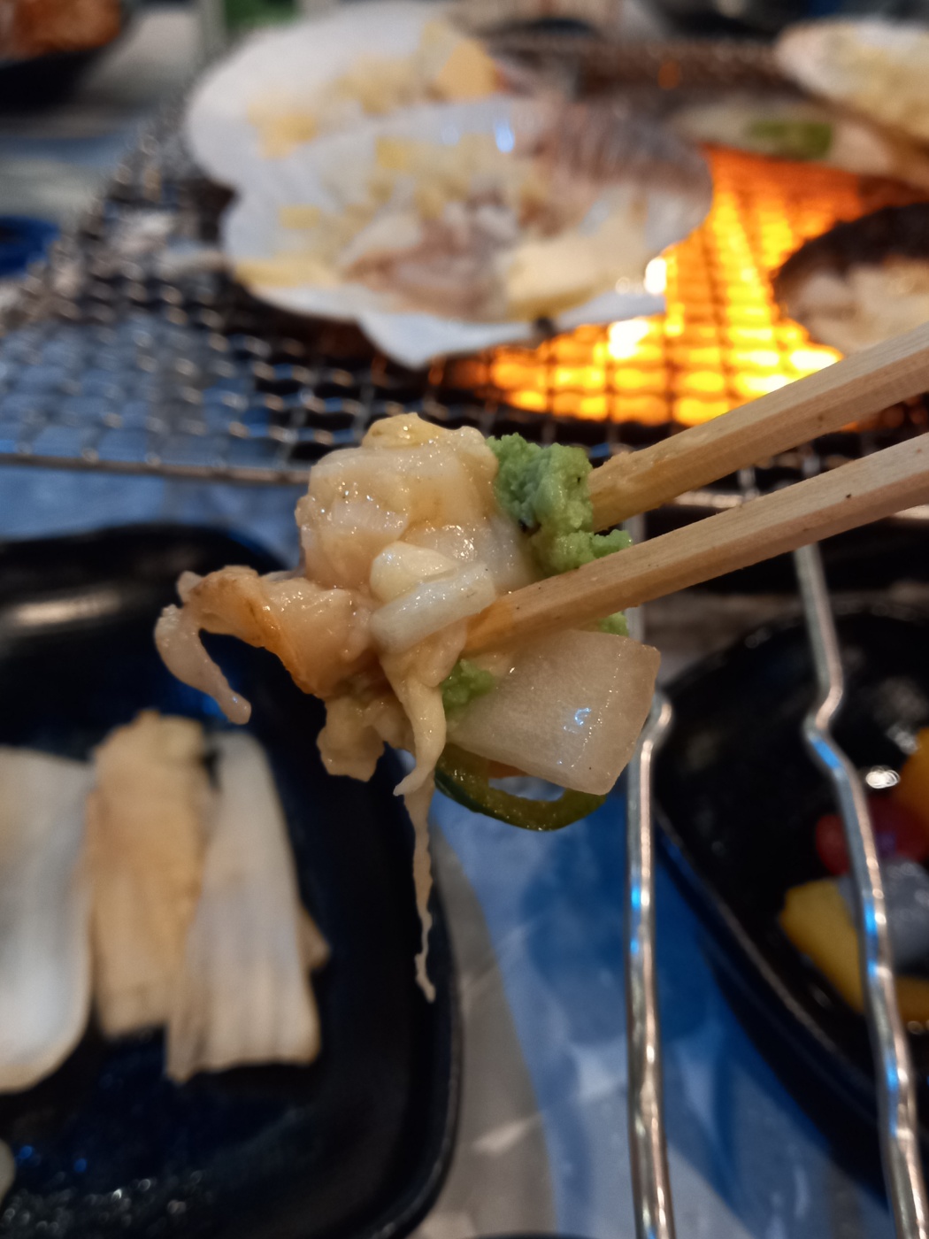 조개가 먼저 구워져서 간장소스에 찍어 먹었습니다.