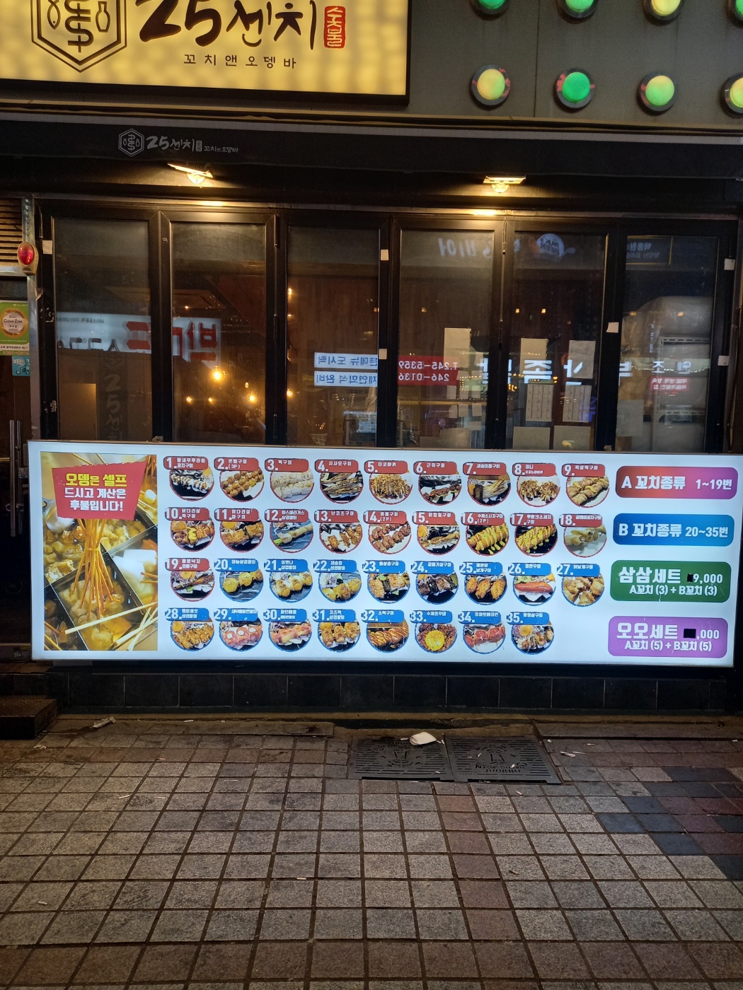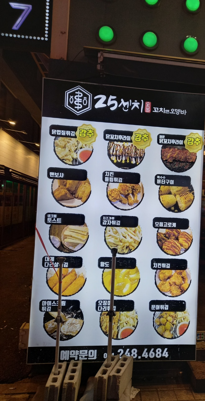 건물 외관에 25cm의 메뉴들이