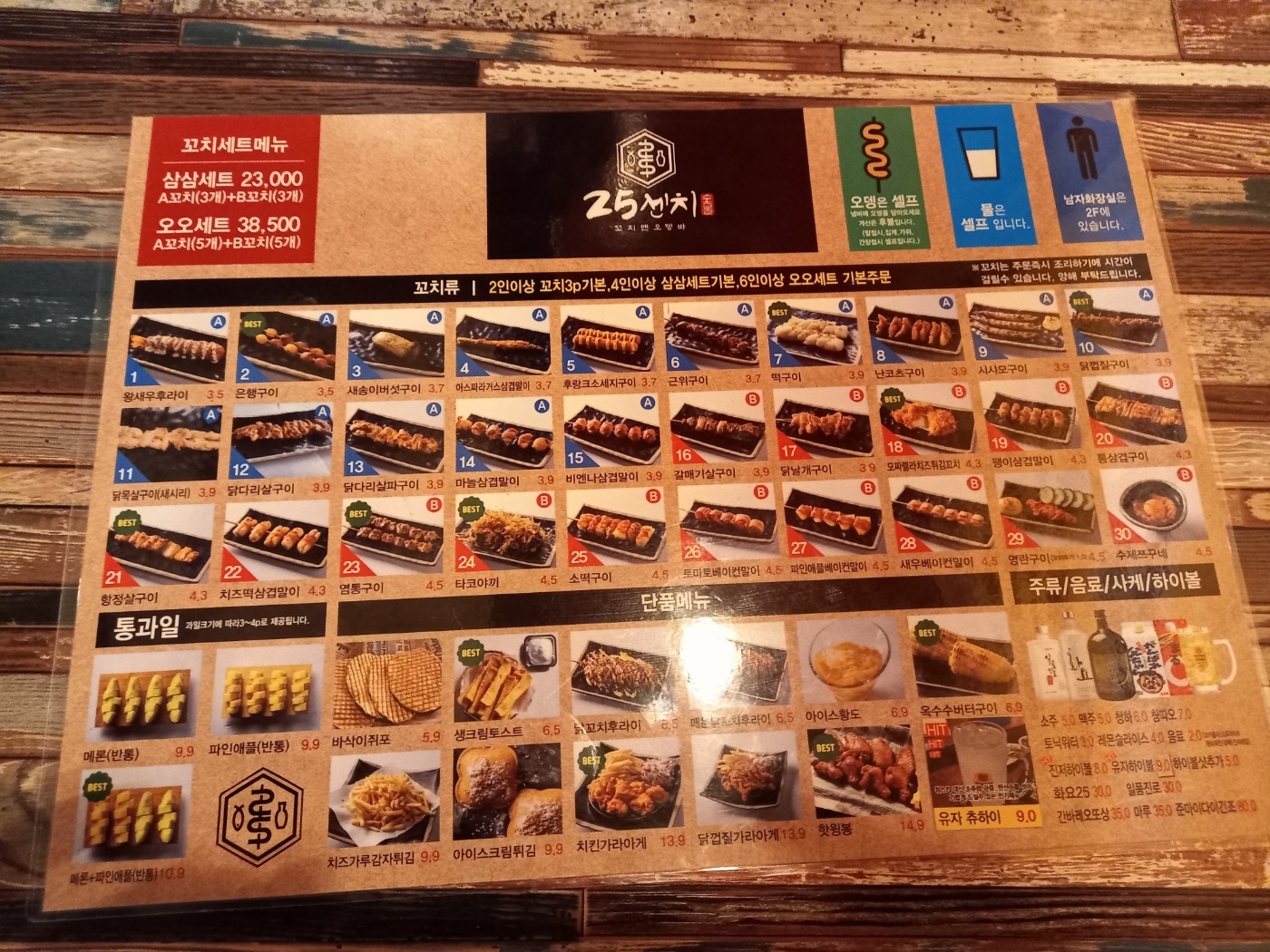 25cm 메뉴판입니다.