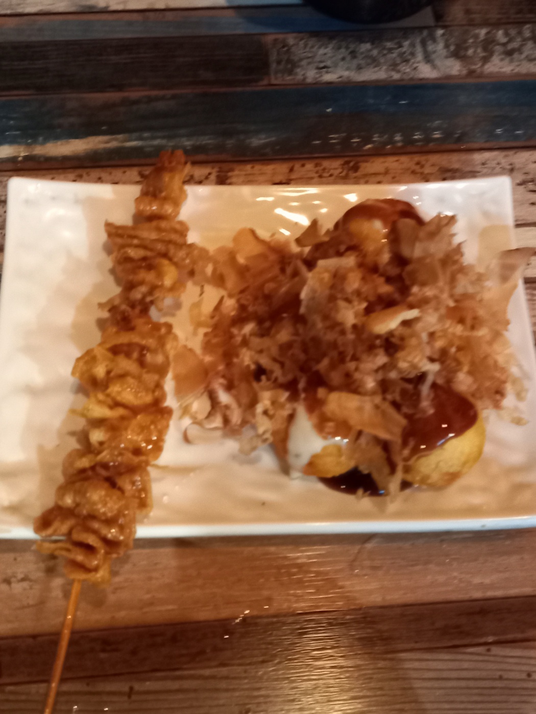 저희가 주문한 닭껍질과, 타코야끼가 나왔습니다.