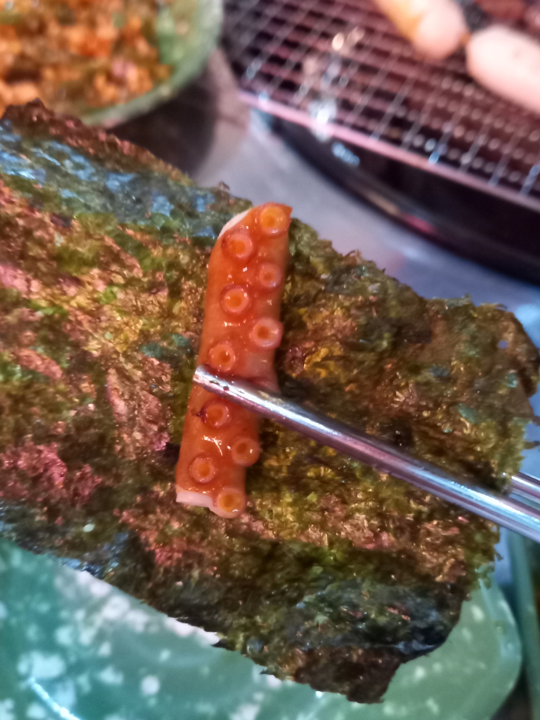 김을 살짝 구워서 산낙지와 드시면 더 맛있습니다.