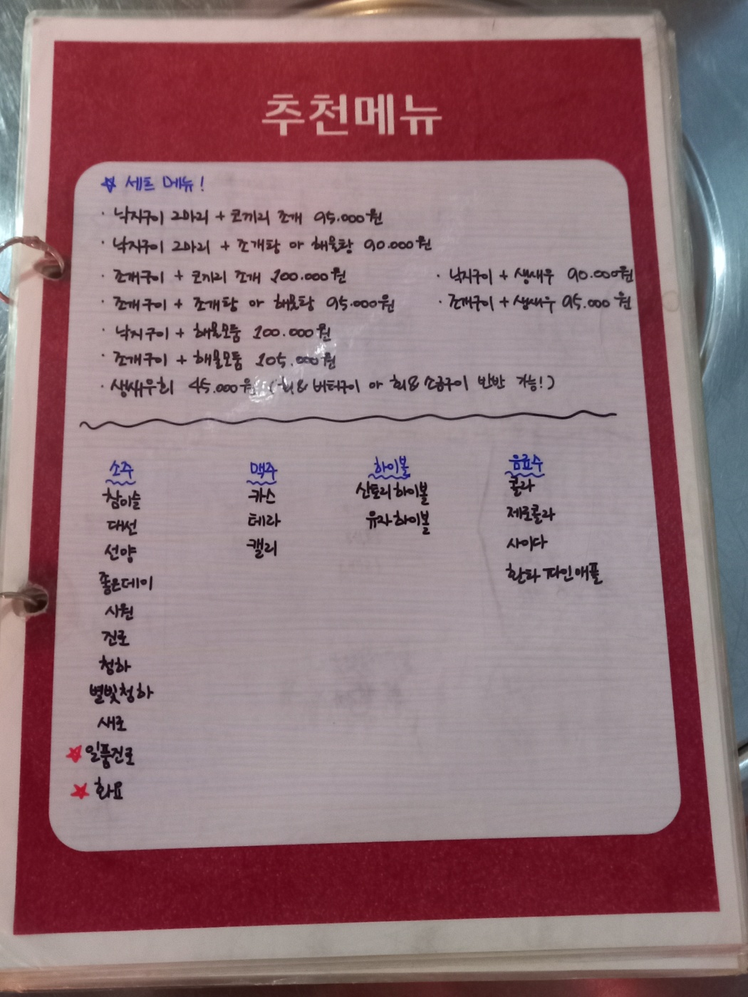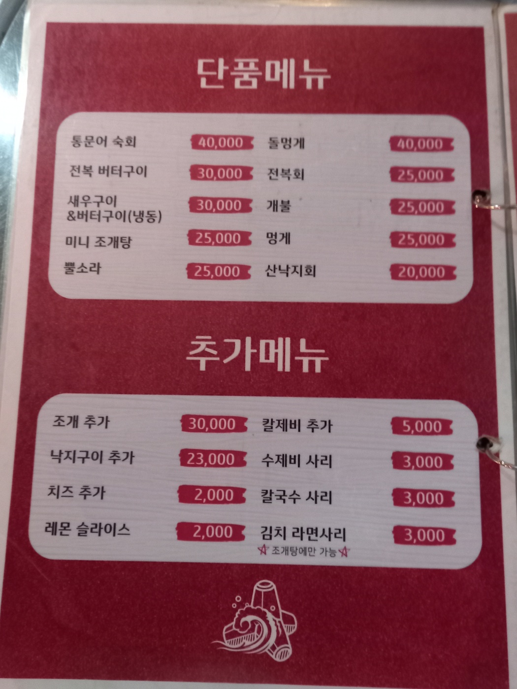 제철 메뉴를 판매해서 전에는 쭈꾸미를 먹었었는데 없더라고요.