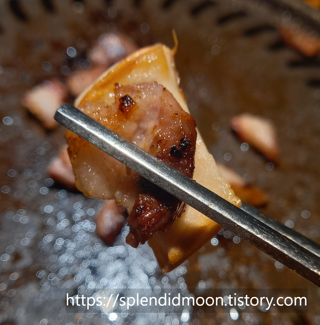 뒷고기는 크게 구우면 식으면서 딱딱해지는 느낌이 있어서 작게 먹는게 맛있는거같아요.