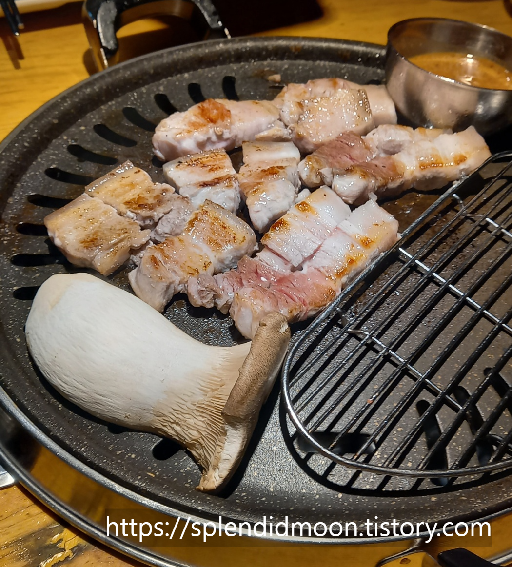 오겹살과 뒷고기를 먹었는데 친구와 둘이서 꽤 푸짐하게 먹었습니다.