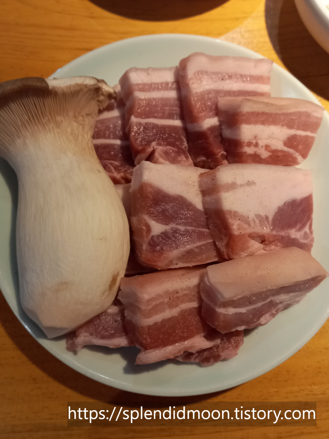 신선한 오겹살의 때깔에 두툼한게 고기의 퀄리티가 좋네요.