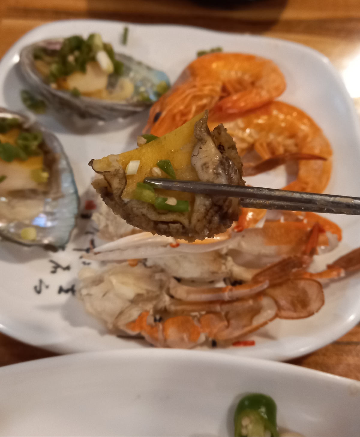 수육에 전복구이를 같이 먹으니 육해의 조합이 너무 좋아요.