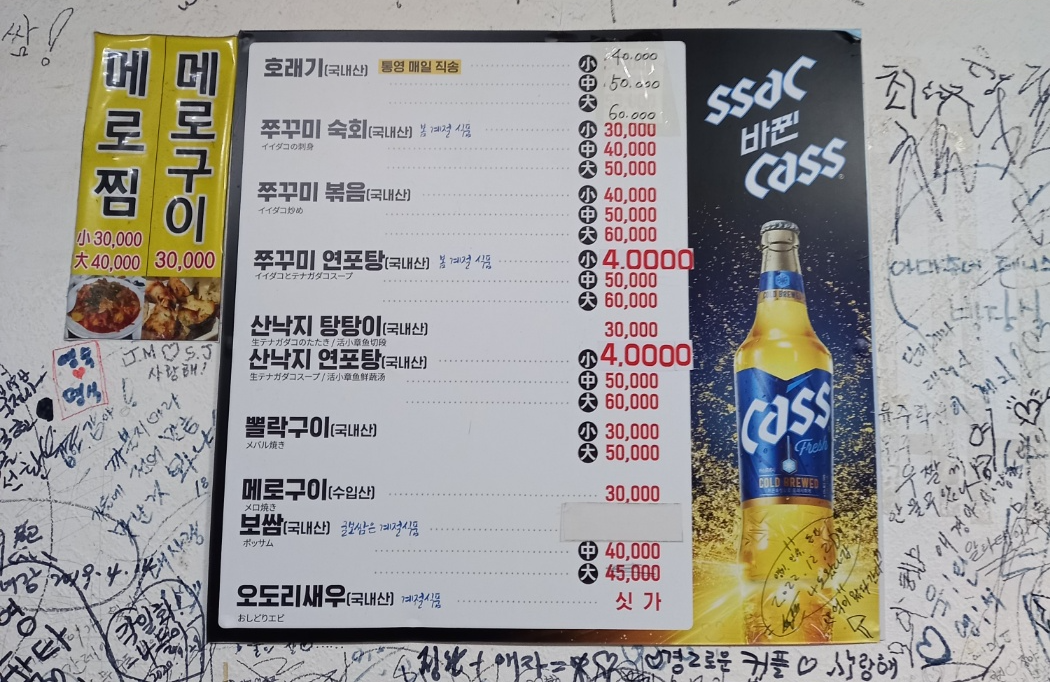 쭈꾸미와, 산낙지가 주 메뉴입니다.
