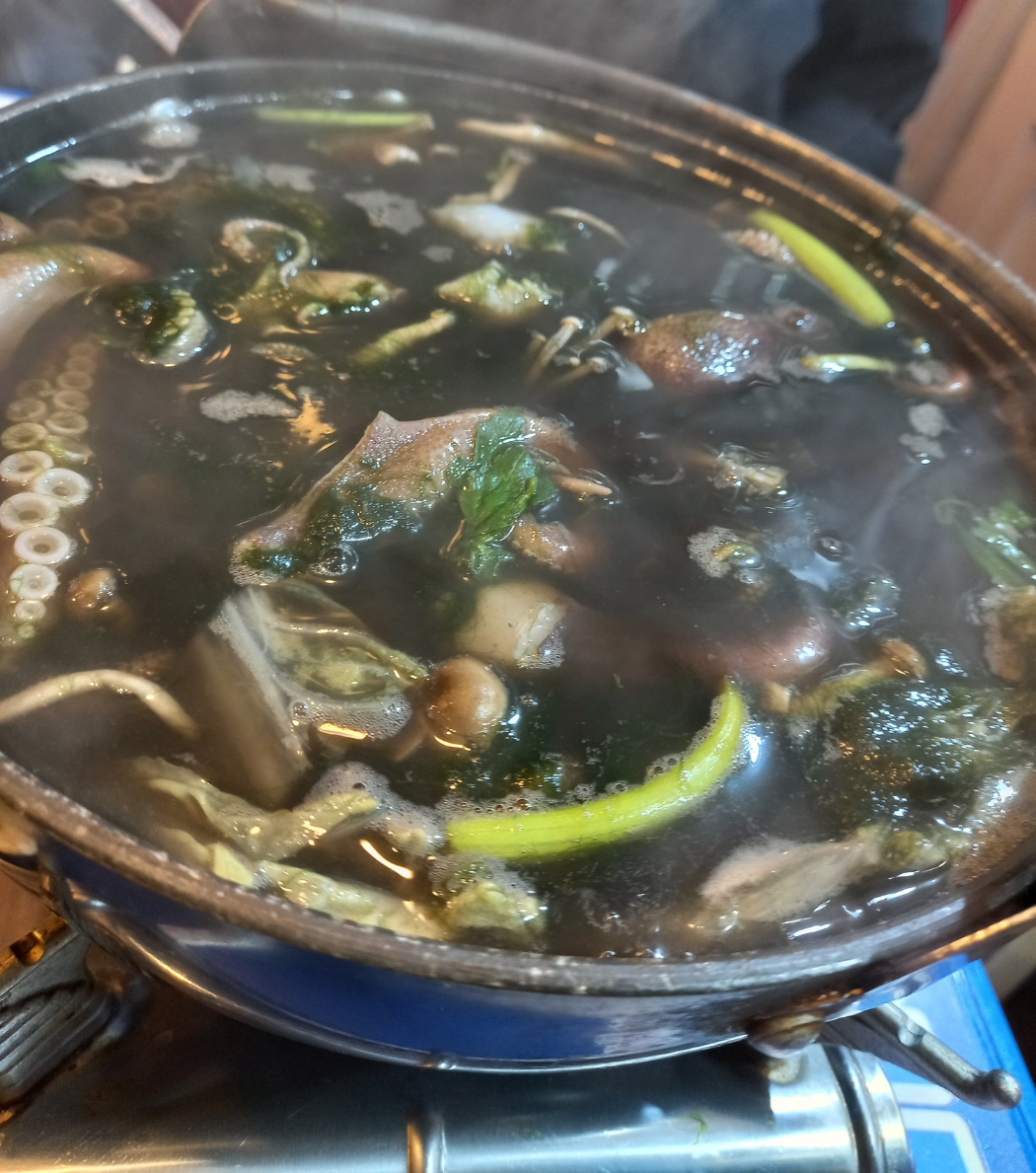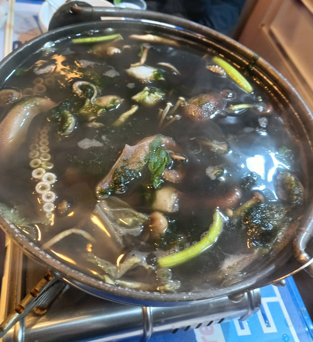 이렇게 탕에 넣어주면 쭈꾸미의 먹물이 퍼져 색깔이 검은색으로 변해요~