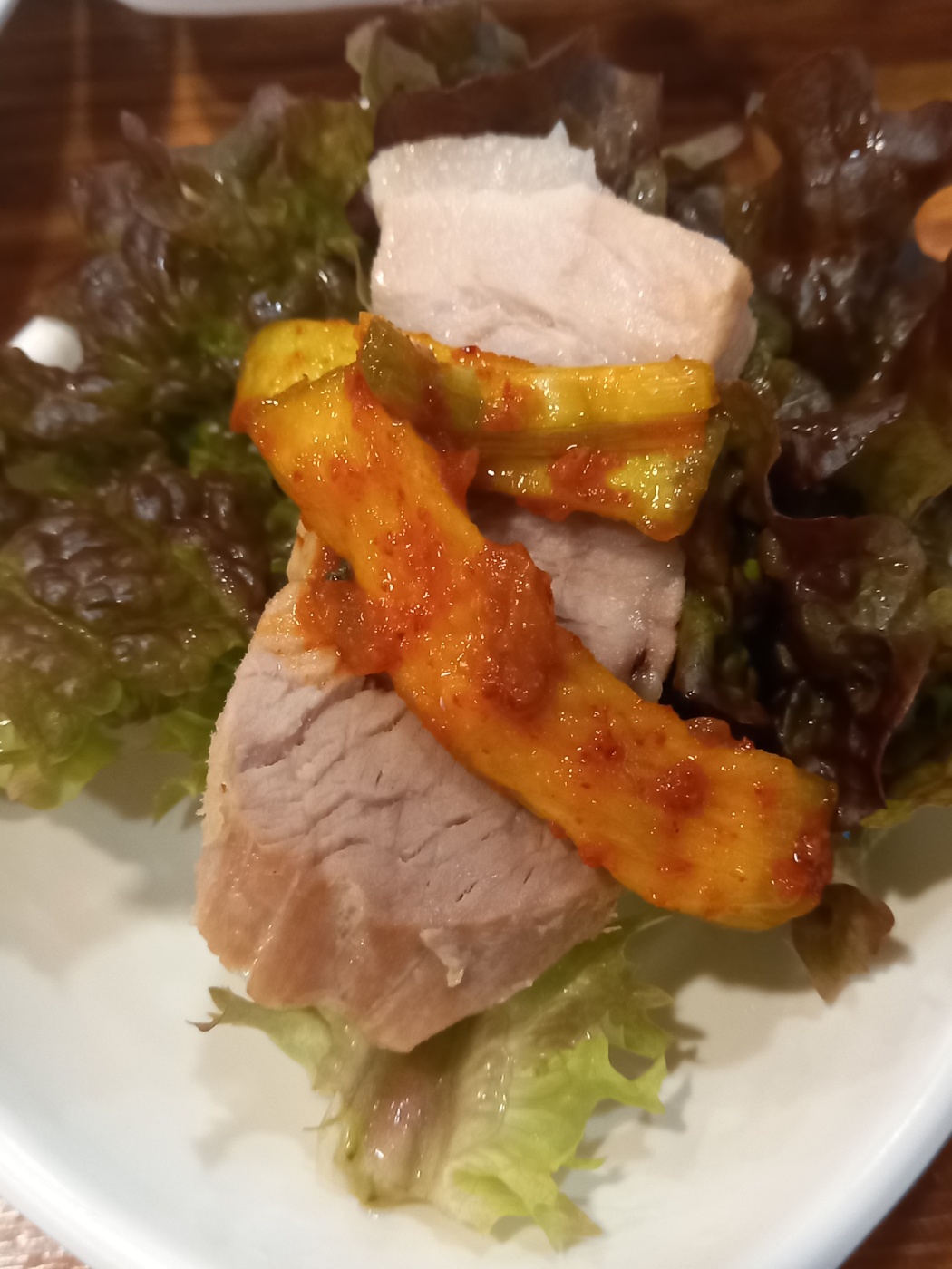 새콤달콤한 무우 슬라이스와 고추 새우젓을 함께 먹어도보았습니다.