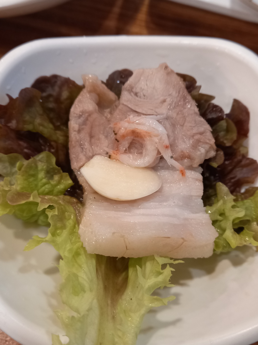 상추에 새우젓 마늘도 함께 올려서 먹었어요.